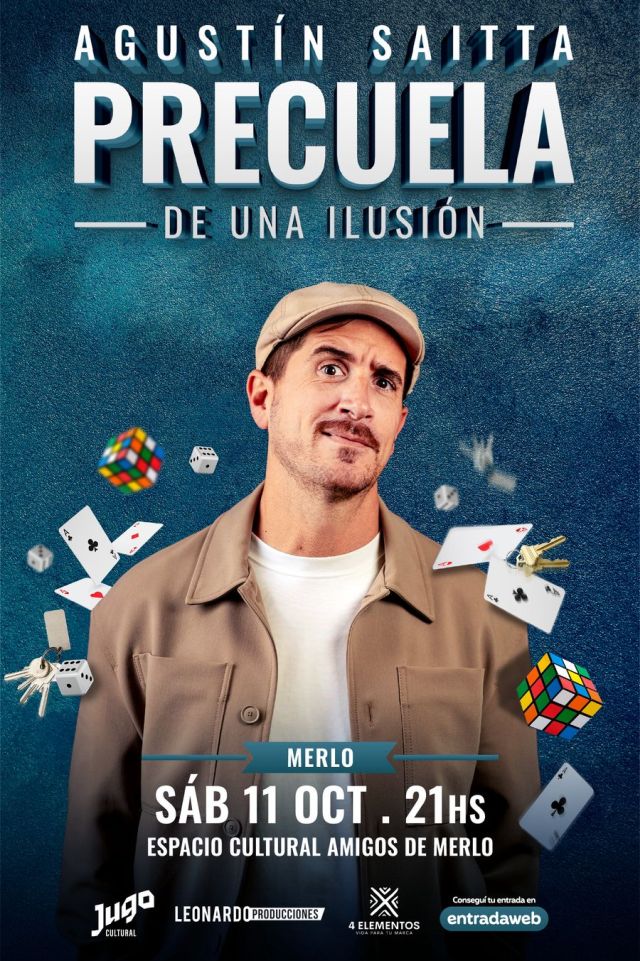 El mago se presentará el sábado 11 de octubre a las 21:00 en el Espacio Cultural Amigos de Merlo, en la Villa de Merlo, y el domingo 12 de octubre a las 20:00 en la Sala Hugo del Carril, en la ciudad de San Luis.