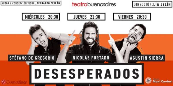 Este miércoles 9 de agosto, estrenó la obra “Desesperados” con Stéfano De Gregorio, Nicolás Furtado y Agustín Sierra en el Teatro Buenos Aires, ubicado en Rodríguez Peña 411.